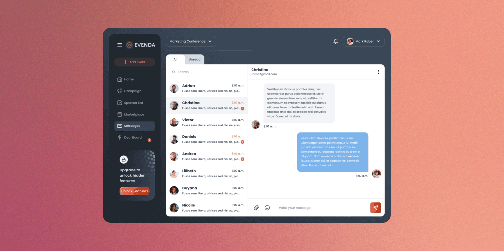 We found that organizers struggle to attract sponsors due to a lack of visibility of their events and complicated negotiation processes. On the other hand, sponsors pointed out the need for tools that allow them to filter events based on their industry, target audience, and geographic location. These findings guided us to design a platform that simplifies the connection between both groups, optimizing event visibility and providing intuitive tools to find the ideal sponsorship.
